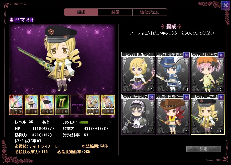 ストーリーではアルティメットまどかでしたが、私のパーティーでは最弱の攻撃力でしたw