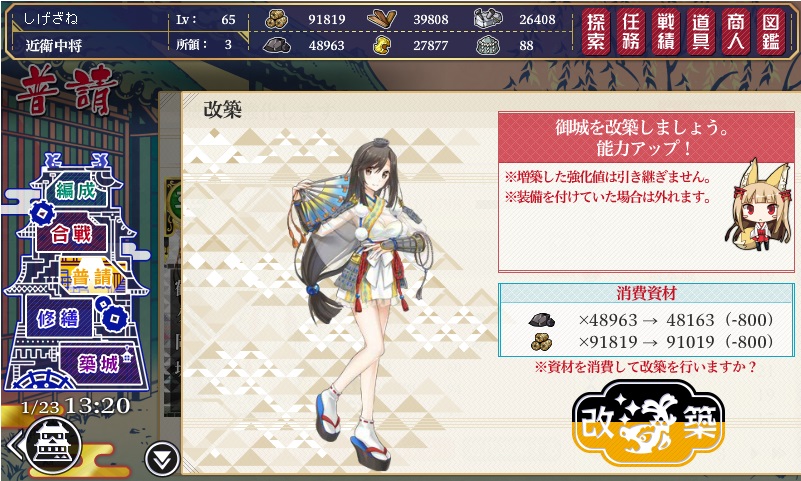 さて、話は遡って前々回のアップデートで追加された城娘の改築追加です。