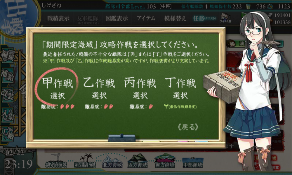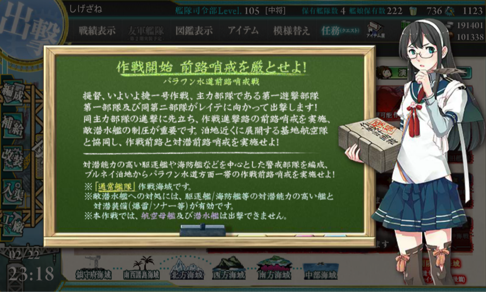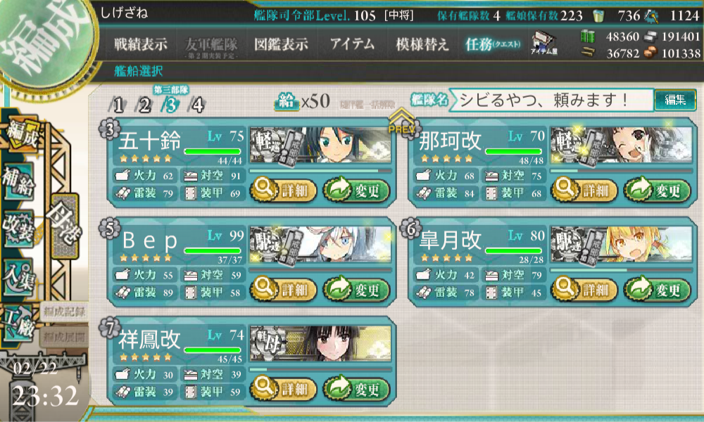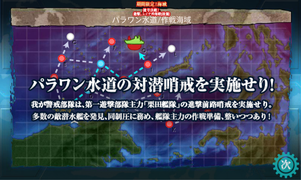 今回のイベントには、他に潜水マスで苦しめられそうな箇所が無いため、ここで対潜艦を全て出し切っています。