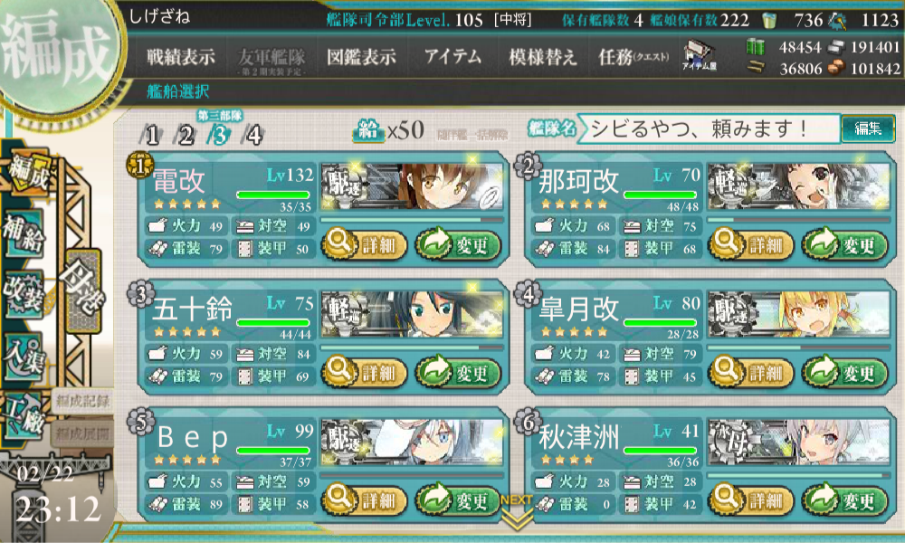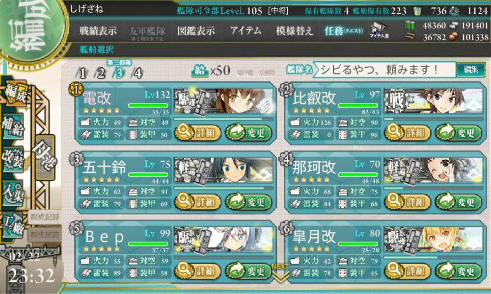 そういえば、E-1から我が艦隊旗艦であり秘書艦である「電」さんを旗艦にしておりました。