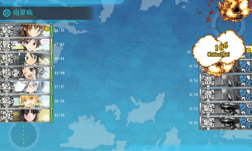 道中にいる敵潜水艦は5隻の先制対潜攻撃により、相手に攻撃をさせないまま撃破していくので、