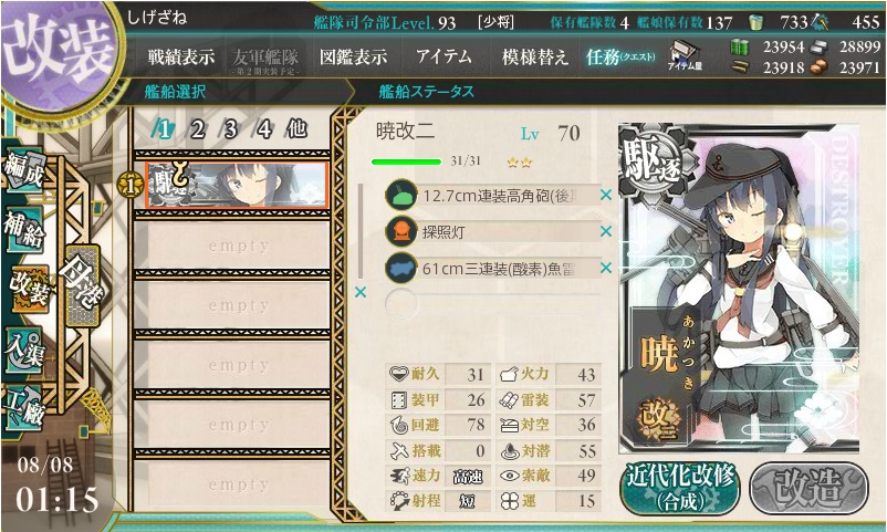 そして、「暁」を改二にしたことである任務が達成できます。