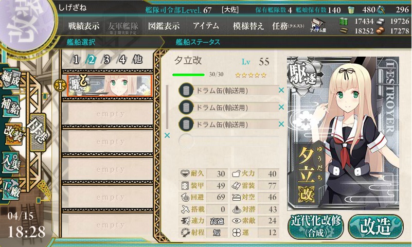 春イベで駆逐艦を使う機会が来たら活躍してくれることでしょう