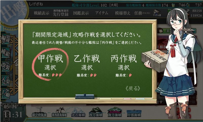 駆逐艦旗艦を貫くなら難易度の変更も考えましたが、