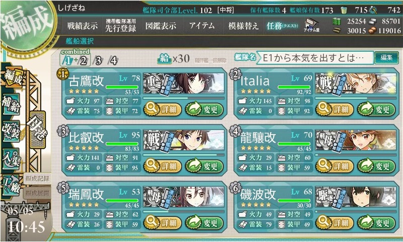 このE-1甲での報酬がなければ今後の攻略が難しくなると踏んでの