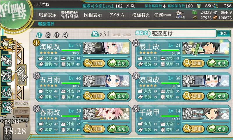 「海風」と「江風」をここで使うため艦種を揃えてみました。