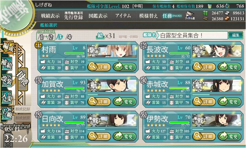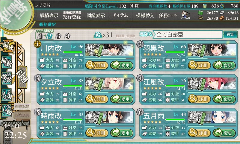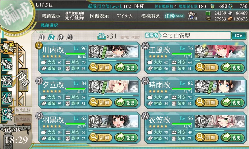 「白露型」全員集合!!現在実装されている「白露型」をずべて編成してみました。