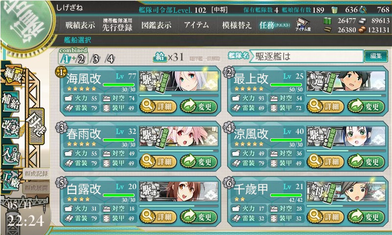 改になっていない「村雨」は流石に第1艦隊でも厳しいので、