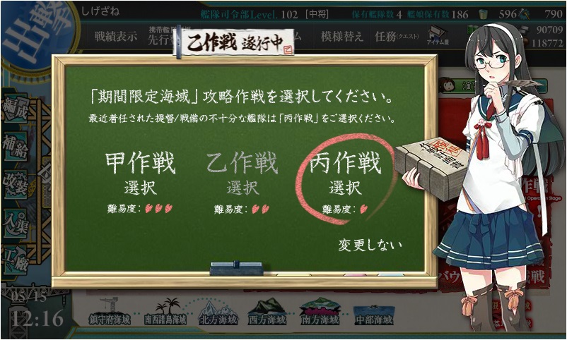 丙!提督ぅ!乙かれさまデース!難易度変更、丙難易度にしました。