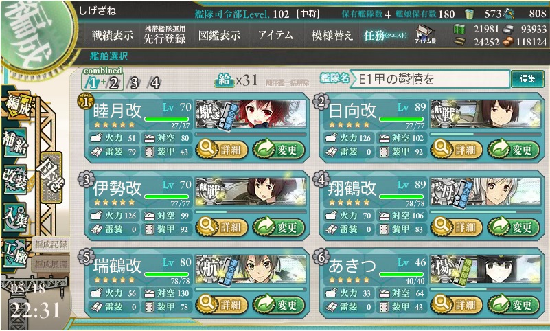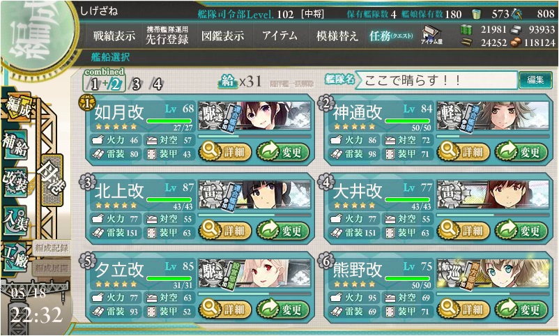 ここはゲン担ぎで支援艦隊の旗艦を変えました。