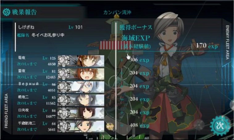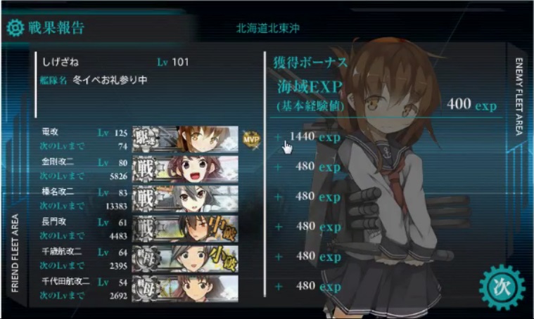 MVPは我が艦隊旗艦「電」。締めが良い。