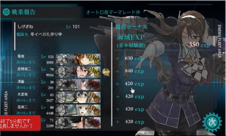 支援艦隊も送り込み一発でボス戦勝利しました。