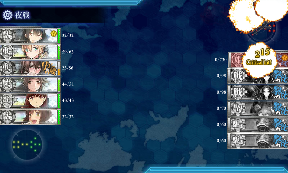 昼戦終了時で、ボスは大破状態でした。