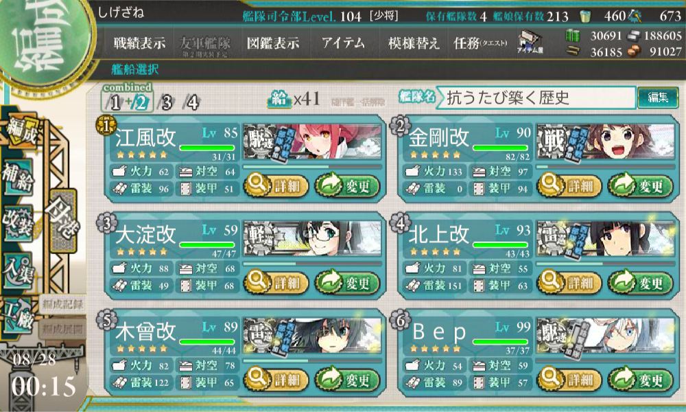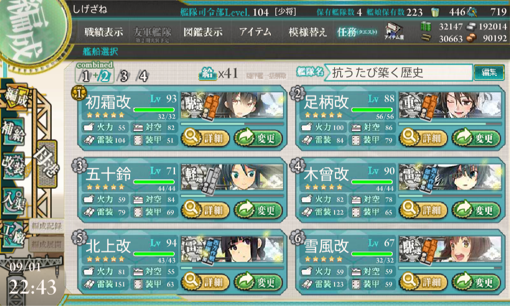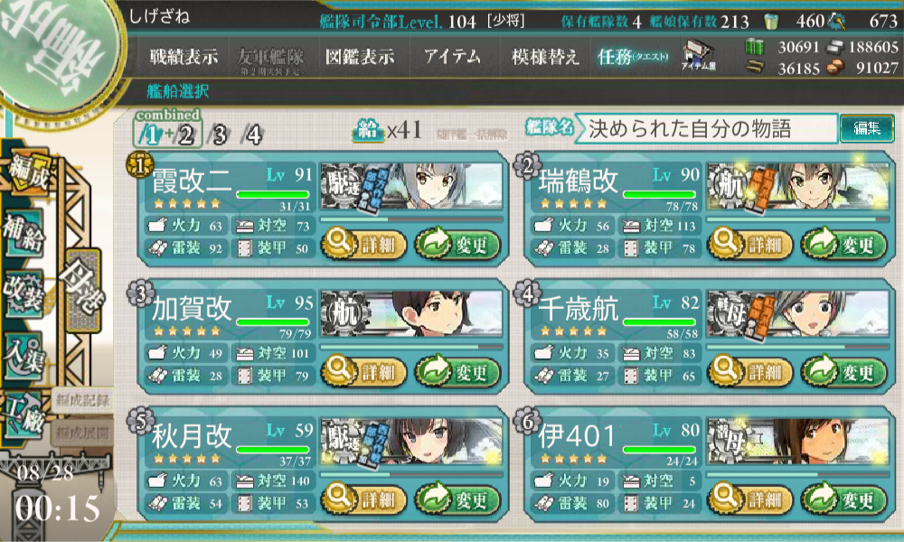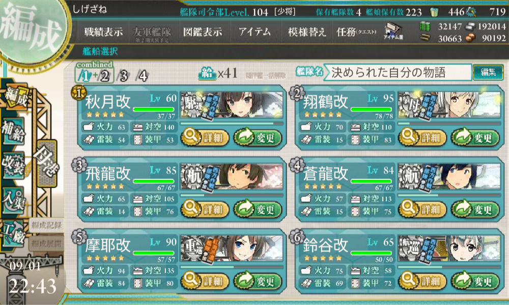 まず、輸送作戦で使用した編成はこちらになります。