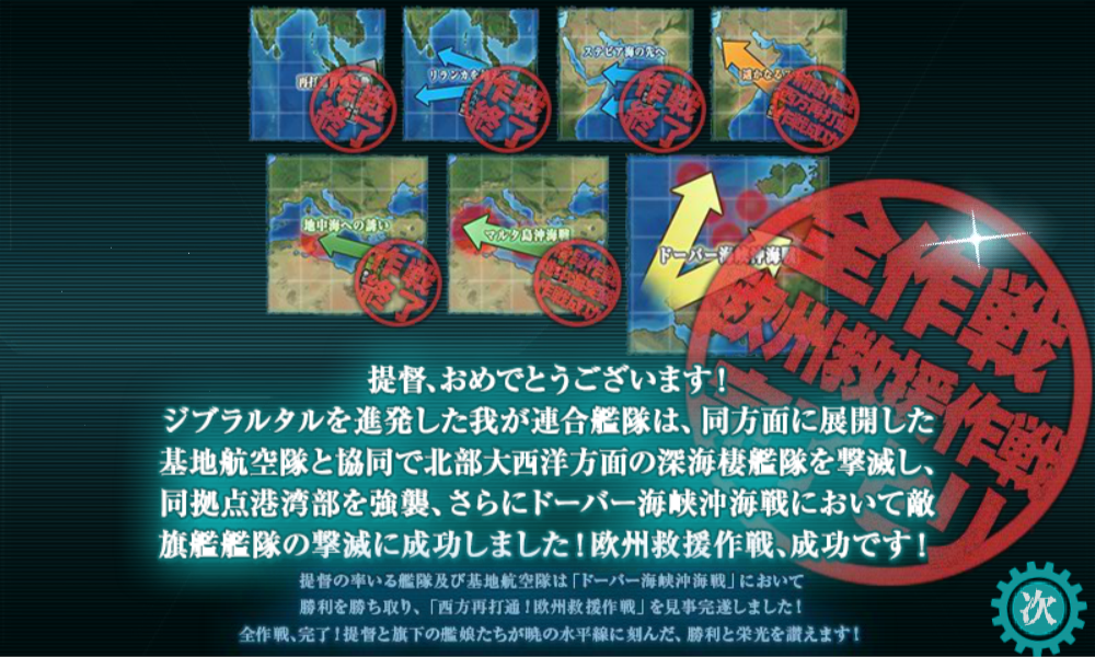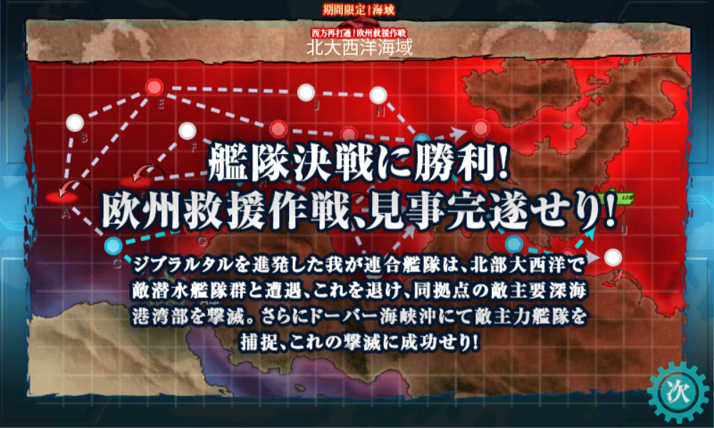 イベント全海域を駆逐艦旗艦でクリアを達成できたので、満足であります。