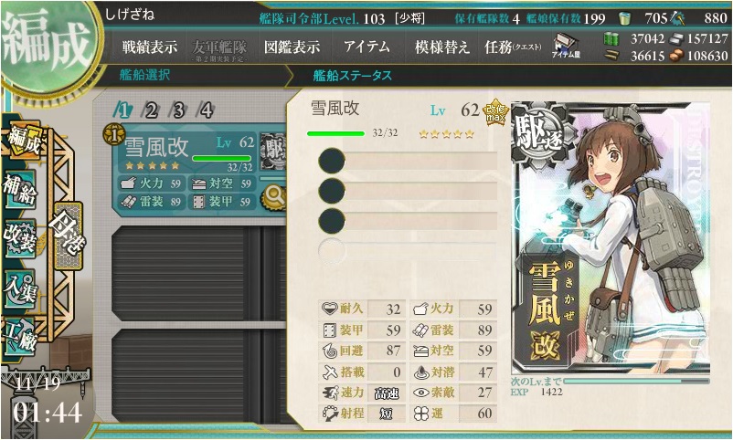 夜戦の魚雷カットイン要員として多くの鎮守府で活躍しています。