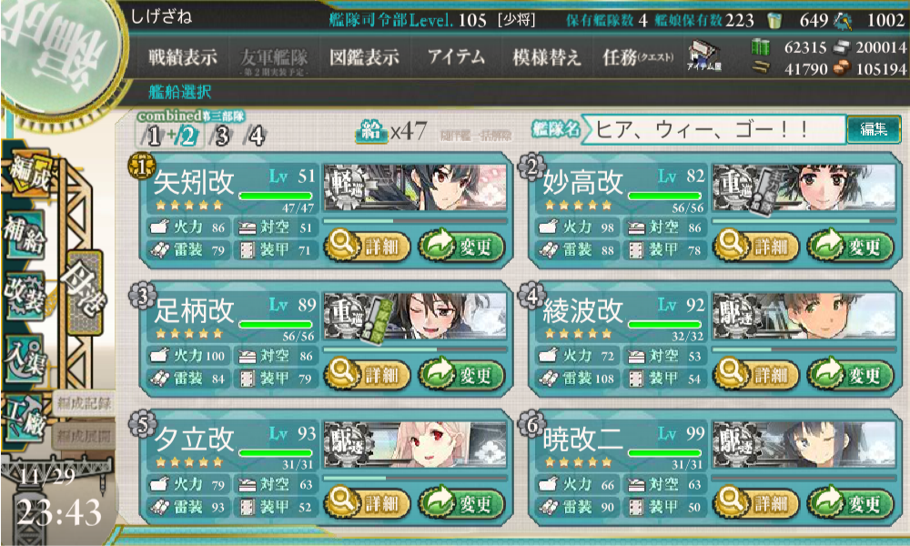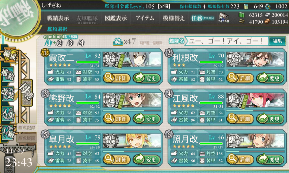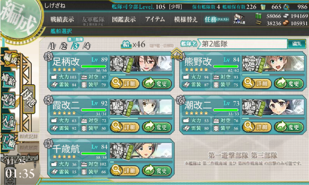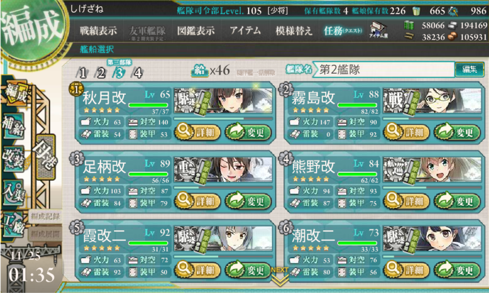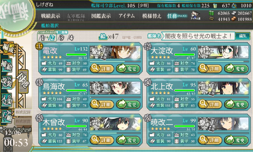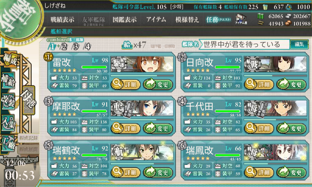 今回も火力を意識しつつ、輸送量も考えた編成となっております。