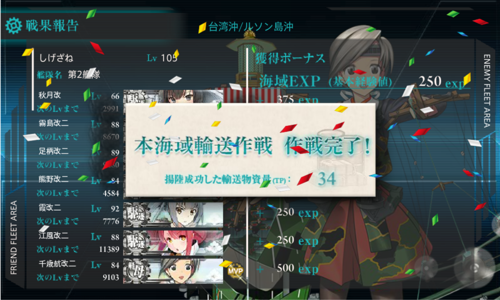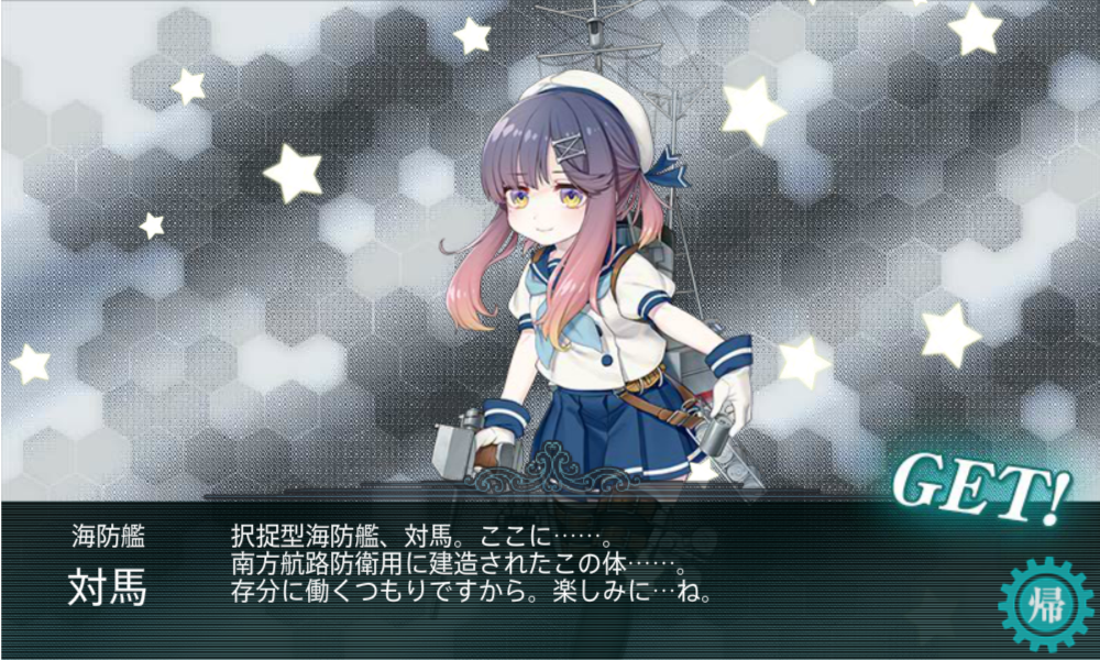 あとE2出撃1回目で新規ドロップ艦「対馬」を獲得してます。