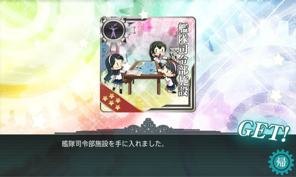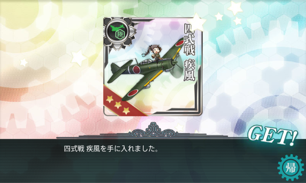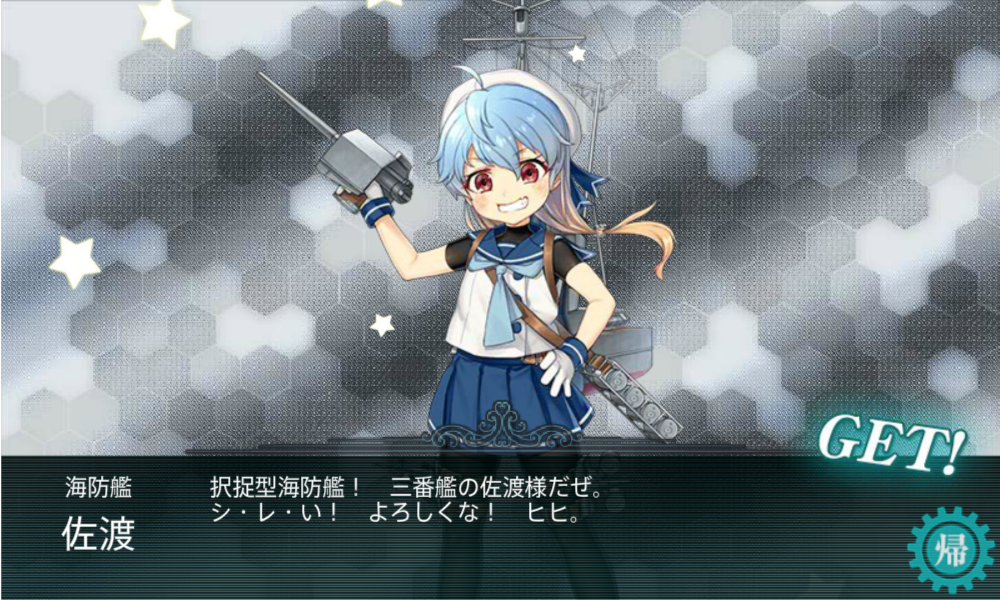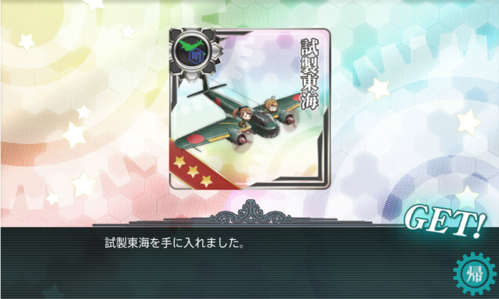 装備「試製東海」と新規艦娘「佐渡」を獲得しました。