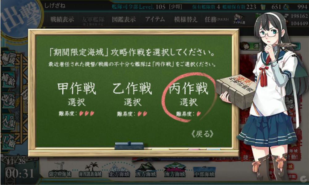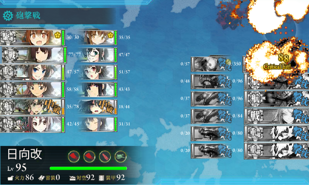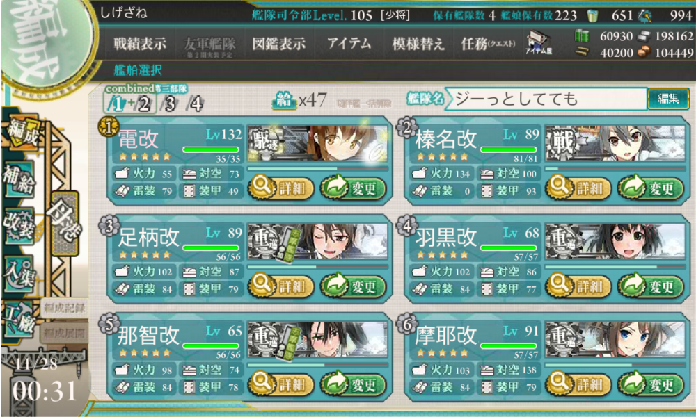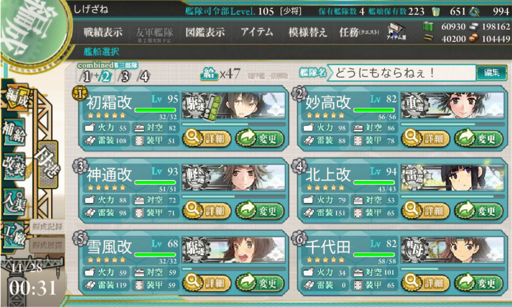 3回ほど大破撤退があり、ボスでのC敗北が1回ありましたが、