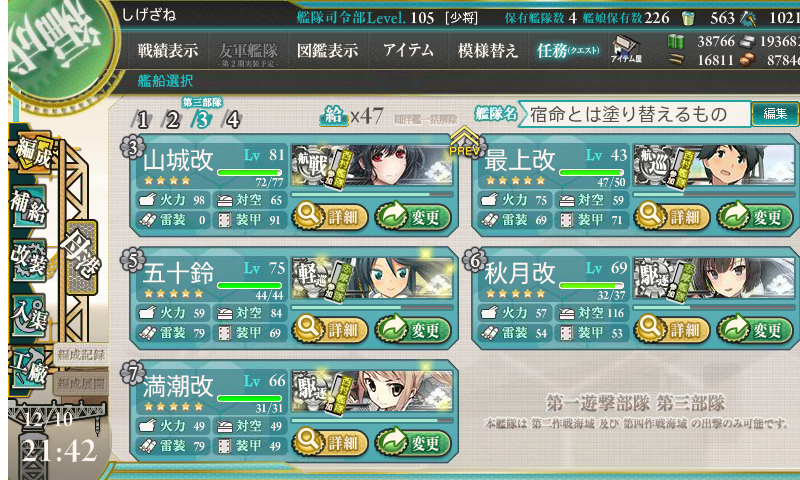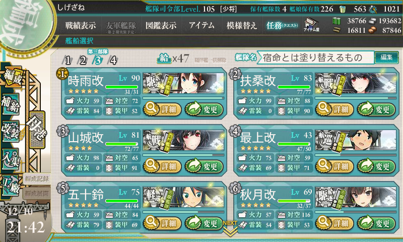 次の機会に、その2人を入れた西村艦隊で攻略したいと思います。