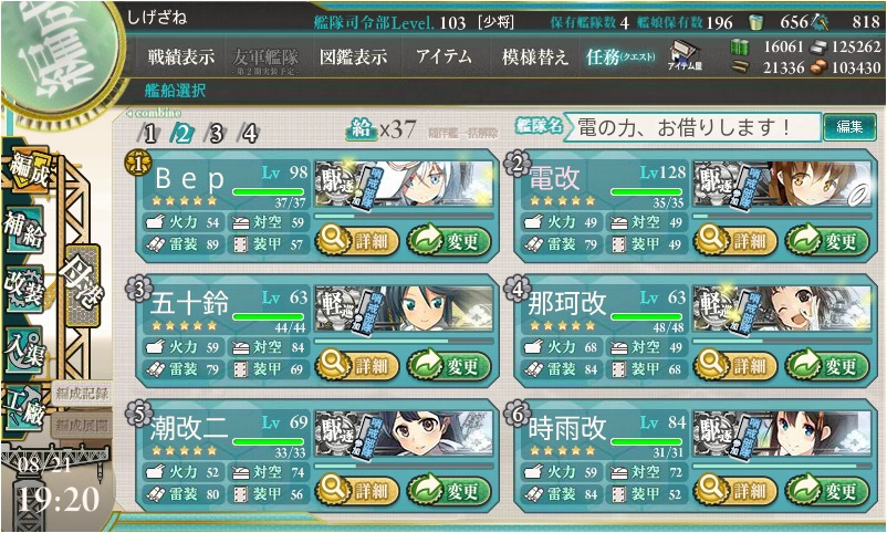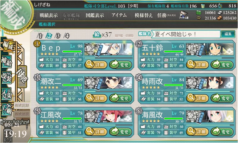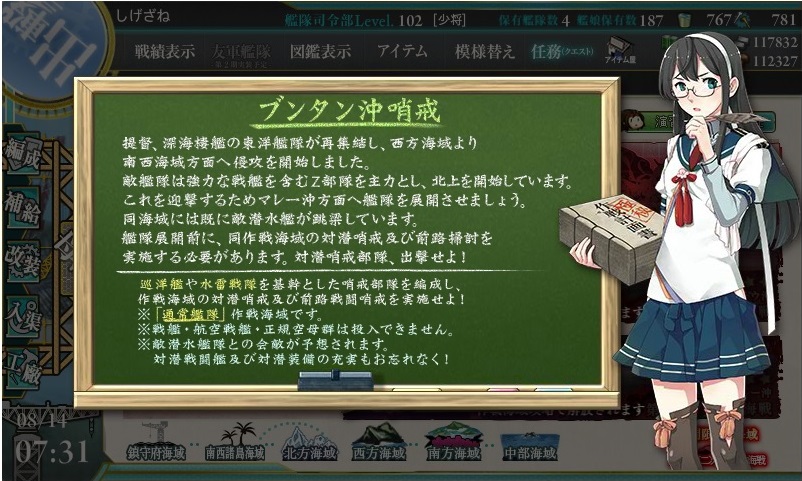 今回は潜水艦が敵のメインということなので、こんな編成で挑みました。