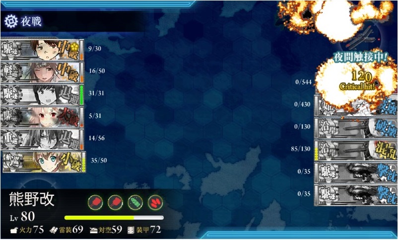 うまいこと三式弾を装備した「熊野」や「足柄」が夜戦で生き残り