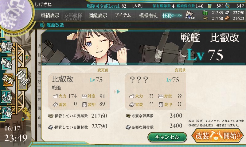 1番早く着任した「比叡」が主力を張り、改二になった次第です。