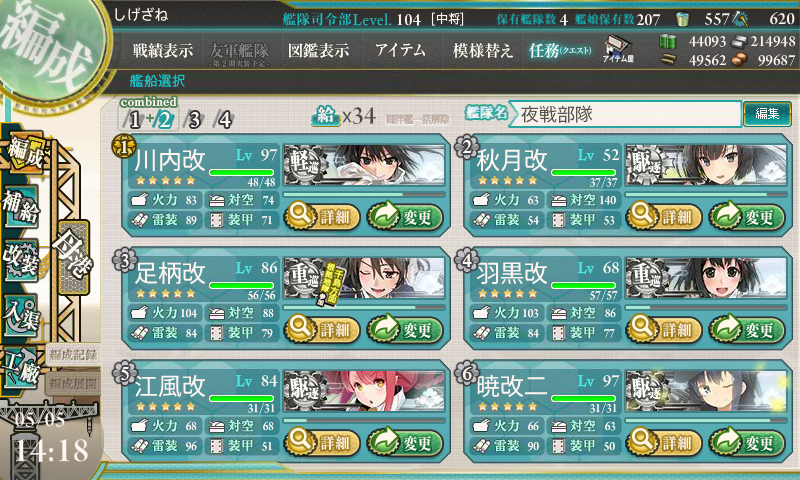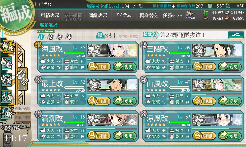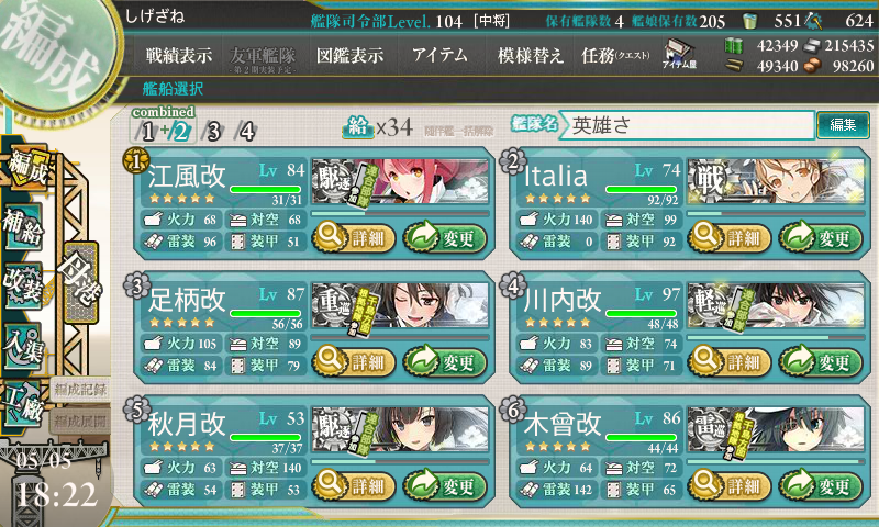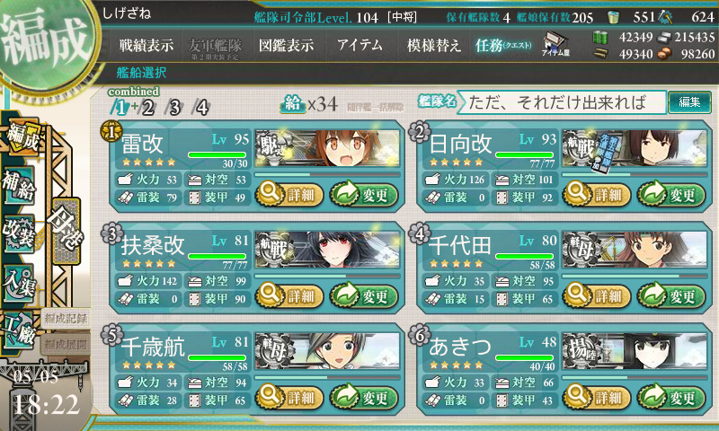 そんなメンドクサイ海域を攻略した編成はコチラになります。