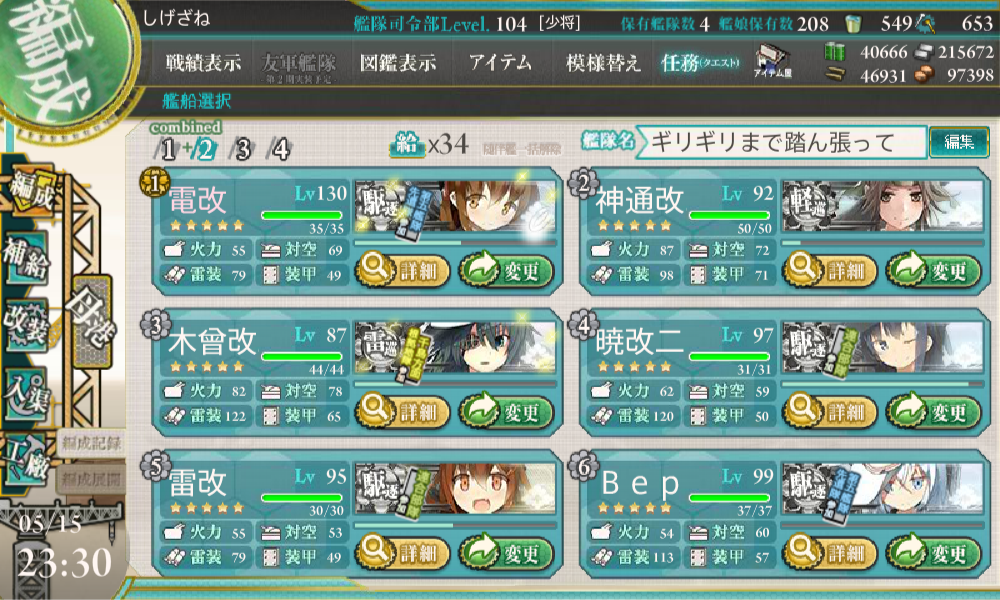道中は、第2艦隊に駆逐艦を入れているため苦戦する