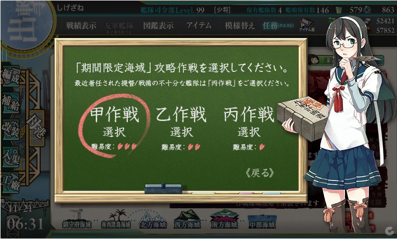 E1はステージ難易度自体が相当低いらしいので、甲を選択しました。