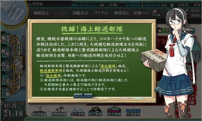 「輸送護衛部隊」を編成しての攻略になります。