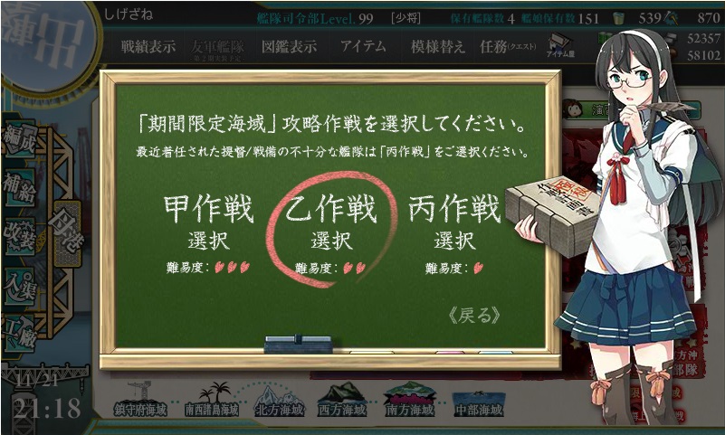 丙にしましたが、以外に手こずった海域でありました。