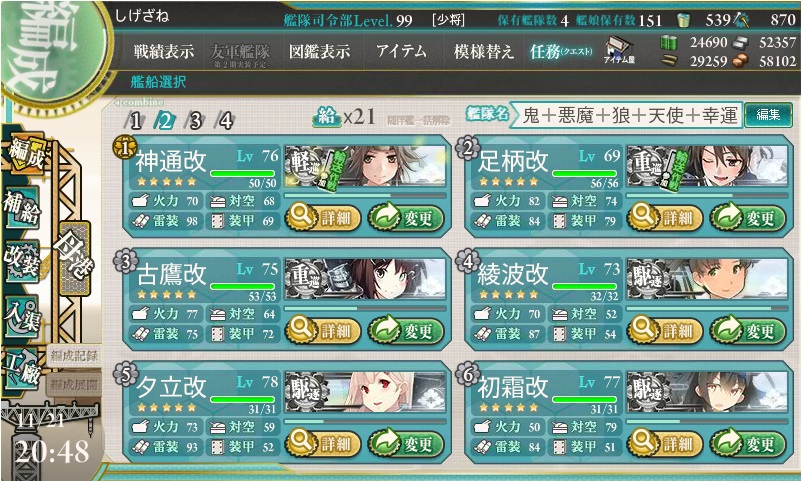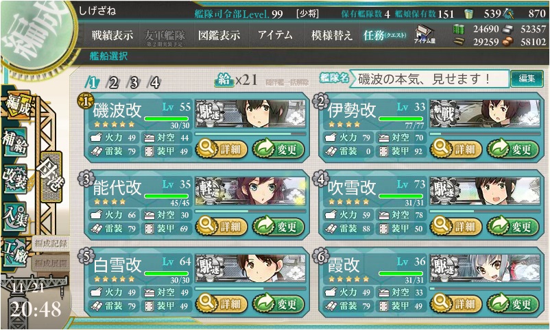 なんて疑問もありつつ、こんな艦隊を編成しました。