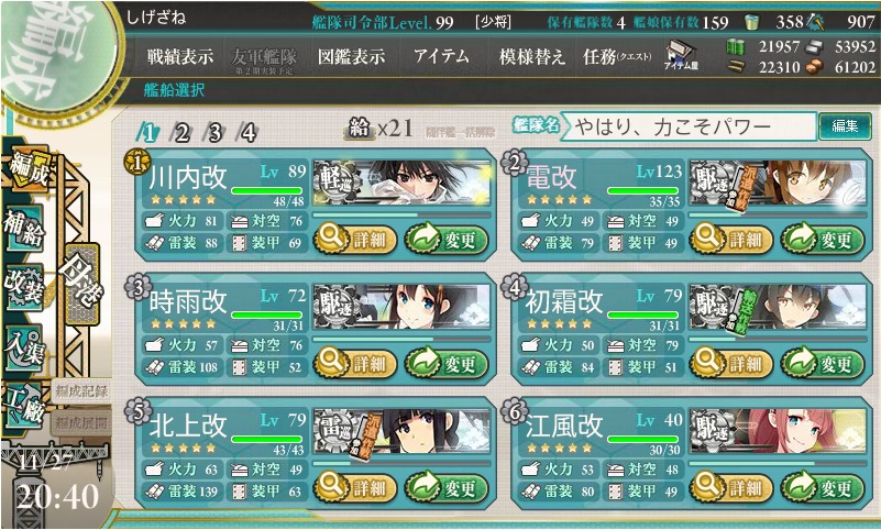 力こそパワーガチ艦隊投入です。輸送ゲージを破壊していた時と同じ編成ですね。