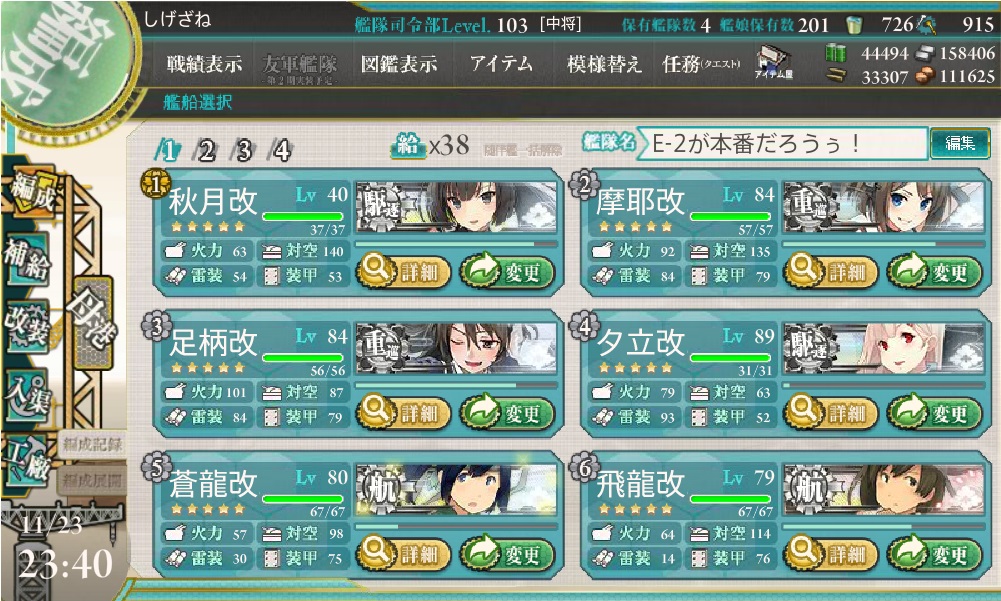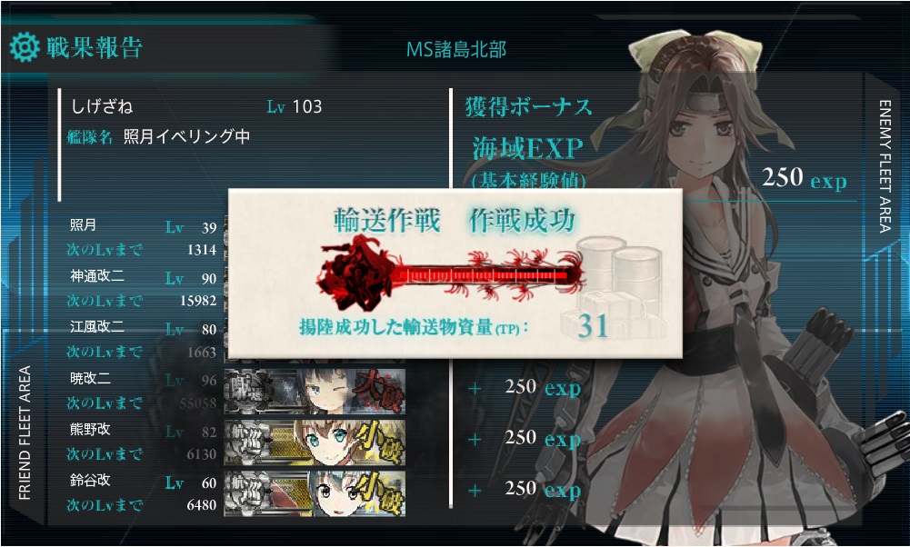 今回も、旗艦駆逐艦で全海域を制覇できてよかったです。