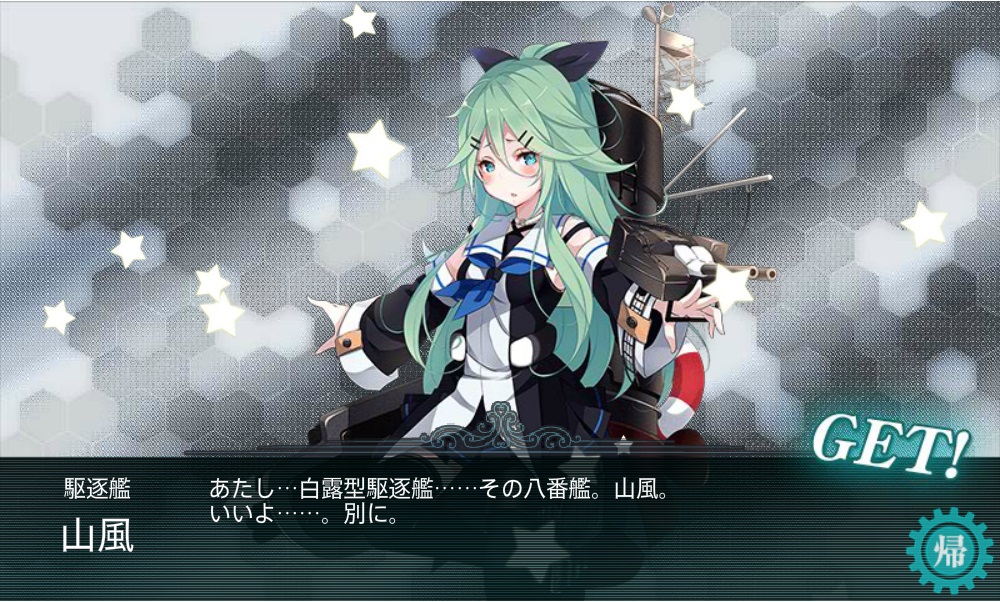 このボス撃破のドロップで駆逐艦「山風」を獲得