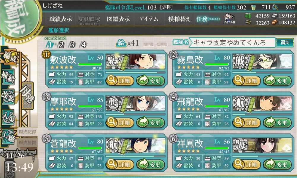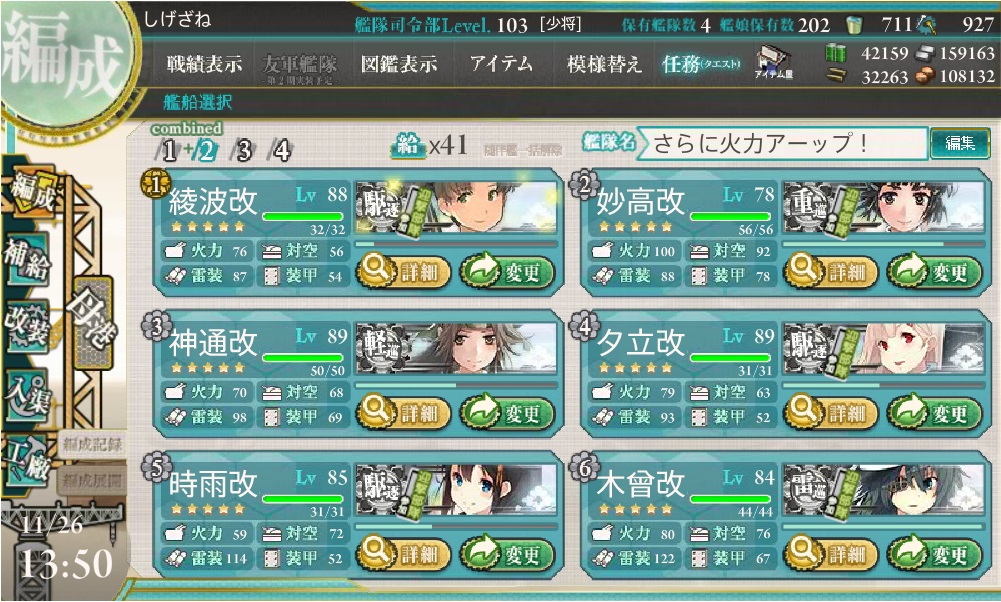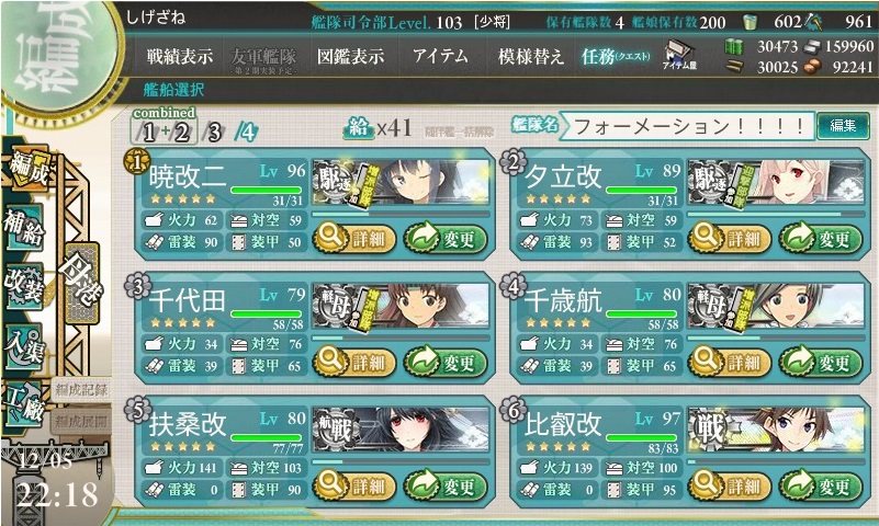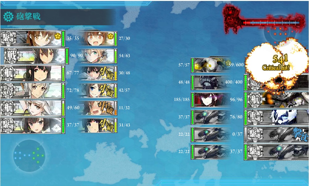 この海域は、敵深海棲艦も連合艦隊での編成になってます。