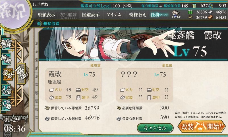 改二に必要なレベルが75と改二駆逐艦としては過去最高であります。