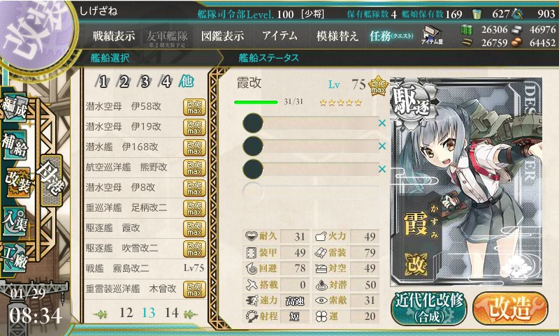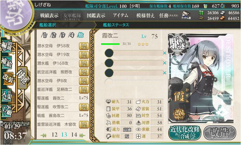 「霞改二」になりました!性能は全体的に向上し、運も高くなってます。