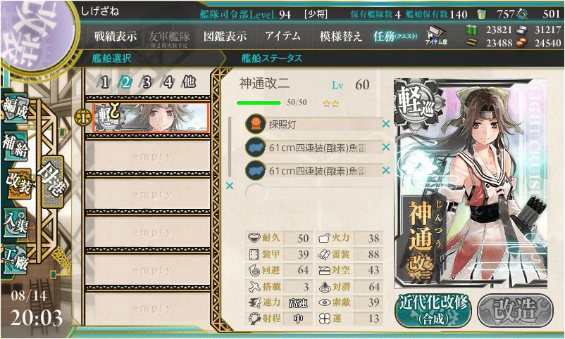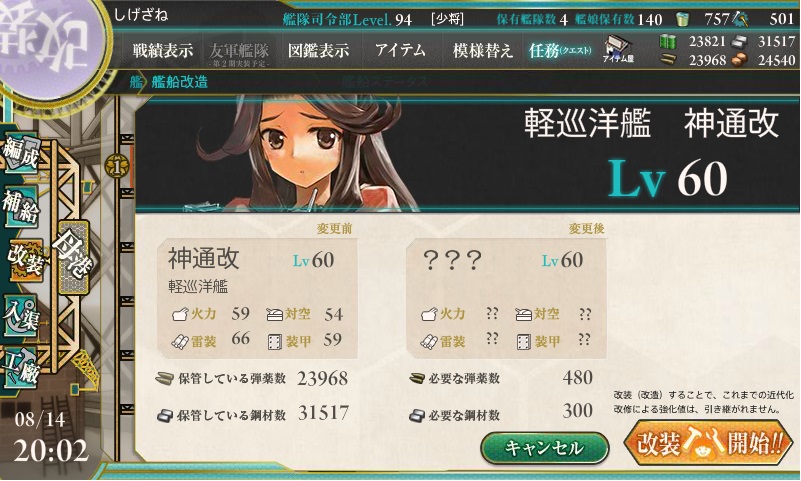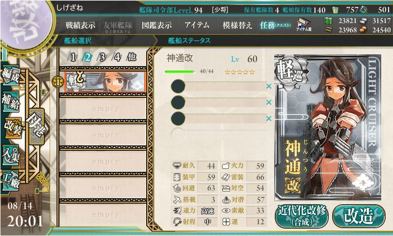夏イベント開始前に戦力増強のため、ある艦娘を改二にしました。