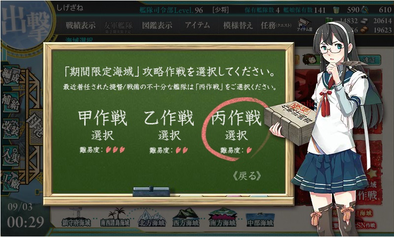 乙難易度で出撃制限が掛かっている状態でしたが、
