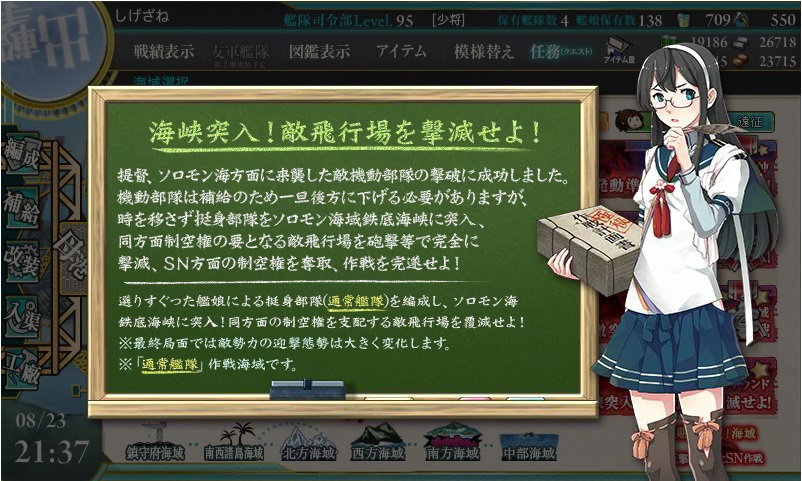 今回のイベントでの目的は全海域制覇でも行けるところまで乙攻略