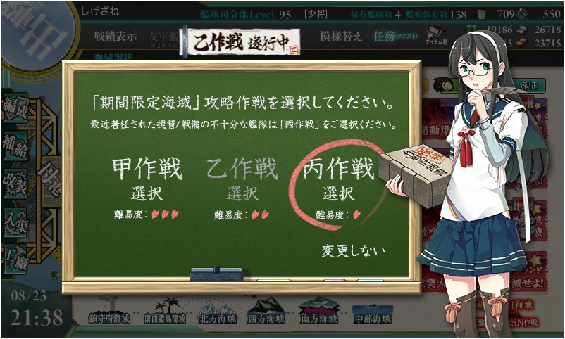 よって、出撃制限のかからない丙難易度をここで選択し、
