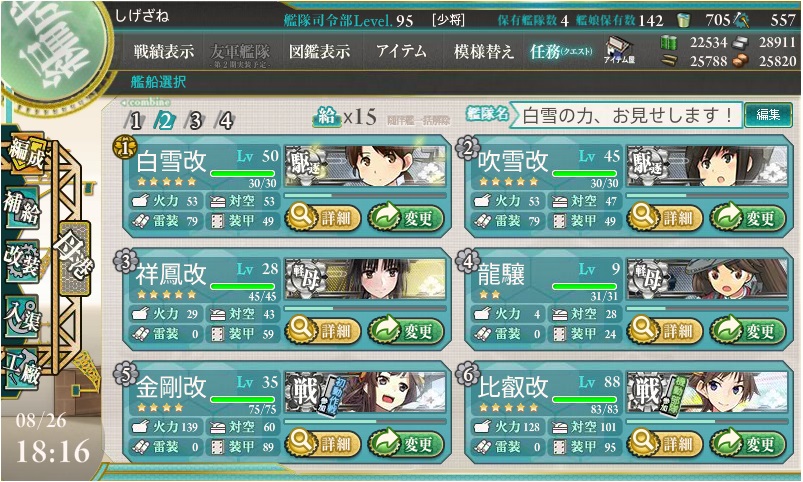 そんなこんなで、E-4攻略に向けた艦隊がこちらになります。