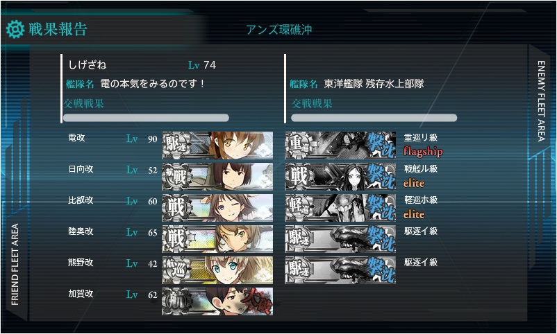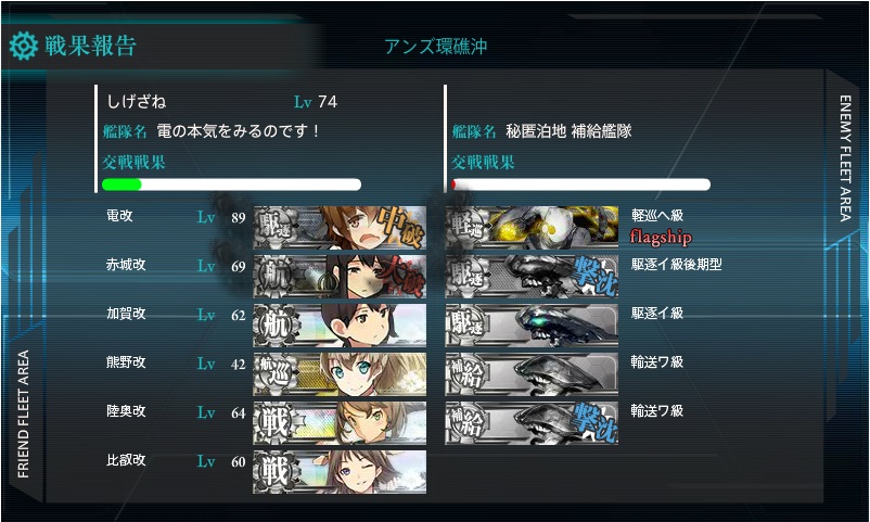 見事、夜戦でボスを撃破しましたー!はっきり言って艦これ初めて以来、一番てこずりました。