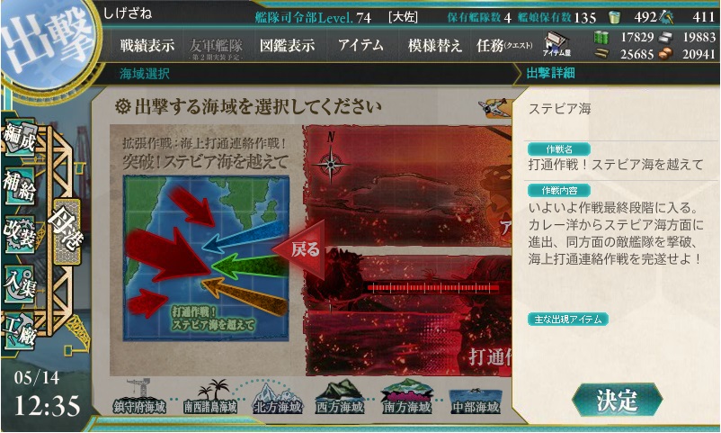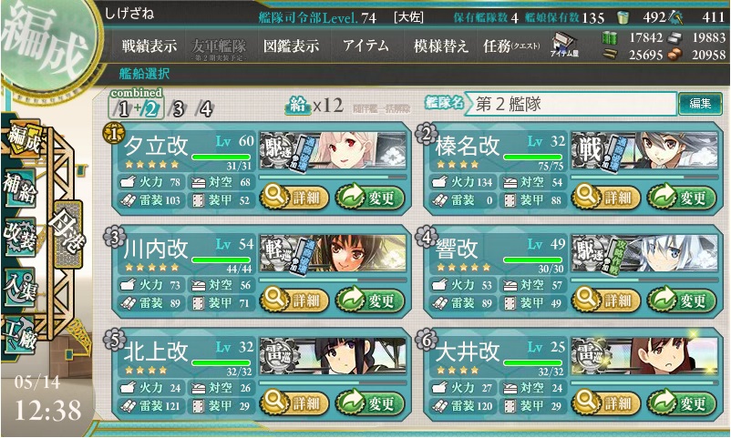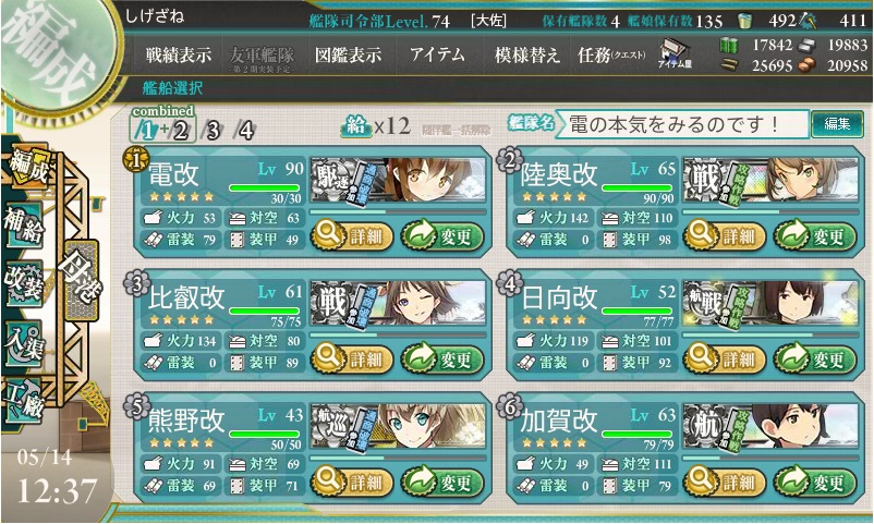 現状あまり問題のない感じに見えますが、10戦やって消費が燃料・弾薬約4000。鋼材が約3000です。