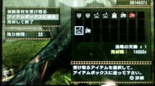 写真は古龍の大宝玉と迅竜の天鱗3枚が出たときの報酬画面です。ええ、素晴らしいお年玉をもらえました(*´ω`*)