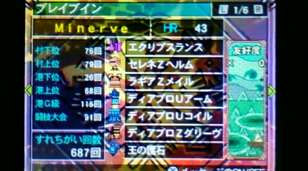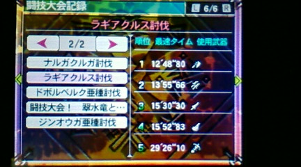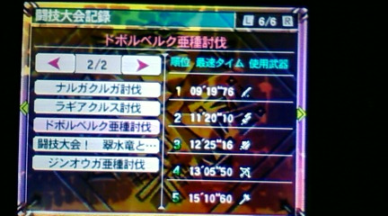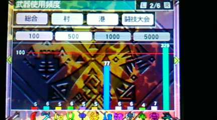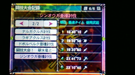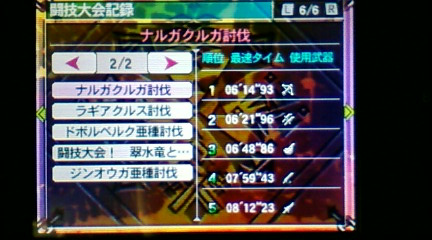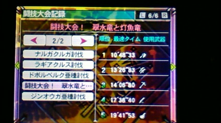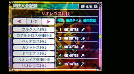 一番多く狩ったモンスターはベリオロスで56頭。闘技大会の影響が大きいですねww