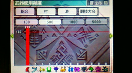 大剣使用回数は273回。メインでもサブでもない武器でこの回数は頑張った方でないかと思います(妥協)
